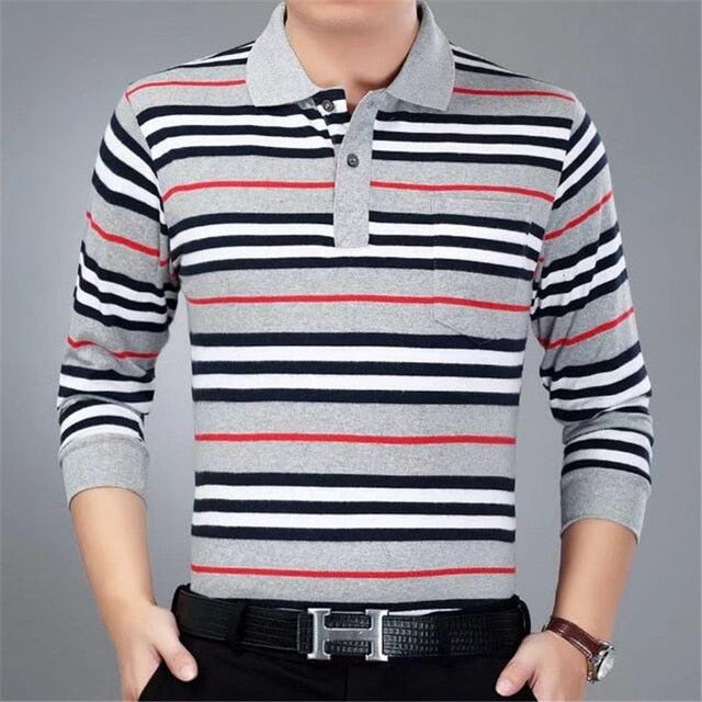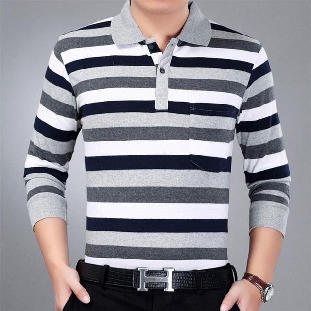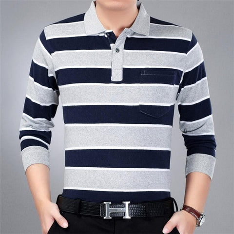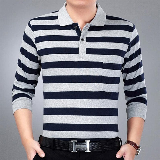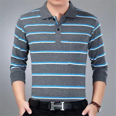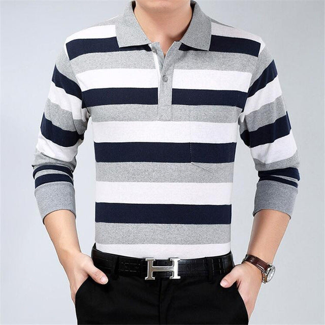 2017 brand men fashion Casual solid polo shirt clothing autumn winter new men polo High quality long sleeves striped polo shirt