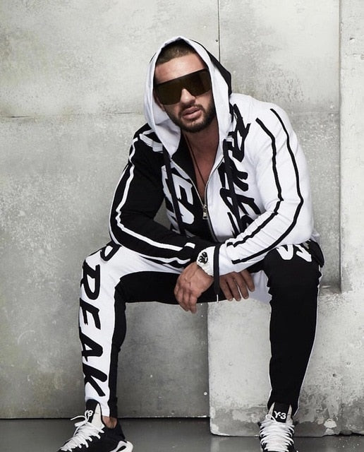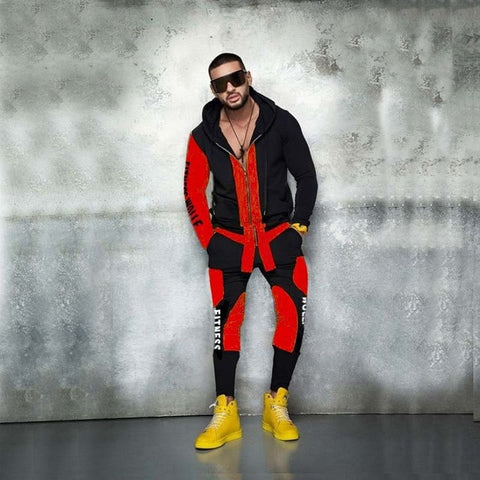 2019 new European and American sports casual suit for men monochromatic pants hooded zipper jacket Mextonmen autumn/winter style